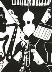 Inventions d'instruments, sensations et expressions plastiques sur de la musique, création de pochette de disque, compositions rythmées, Croquis d'observation de répétitions ou balances musicales ... Observation d'oeuvres de Fernand Leger, Picasso, Braque, Jackson Pollock, Jim Flora, David Stone Martin, utilisation des signes musicaux pour des compositions abstraites,...